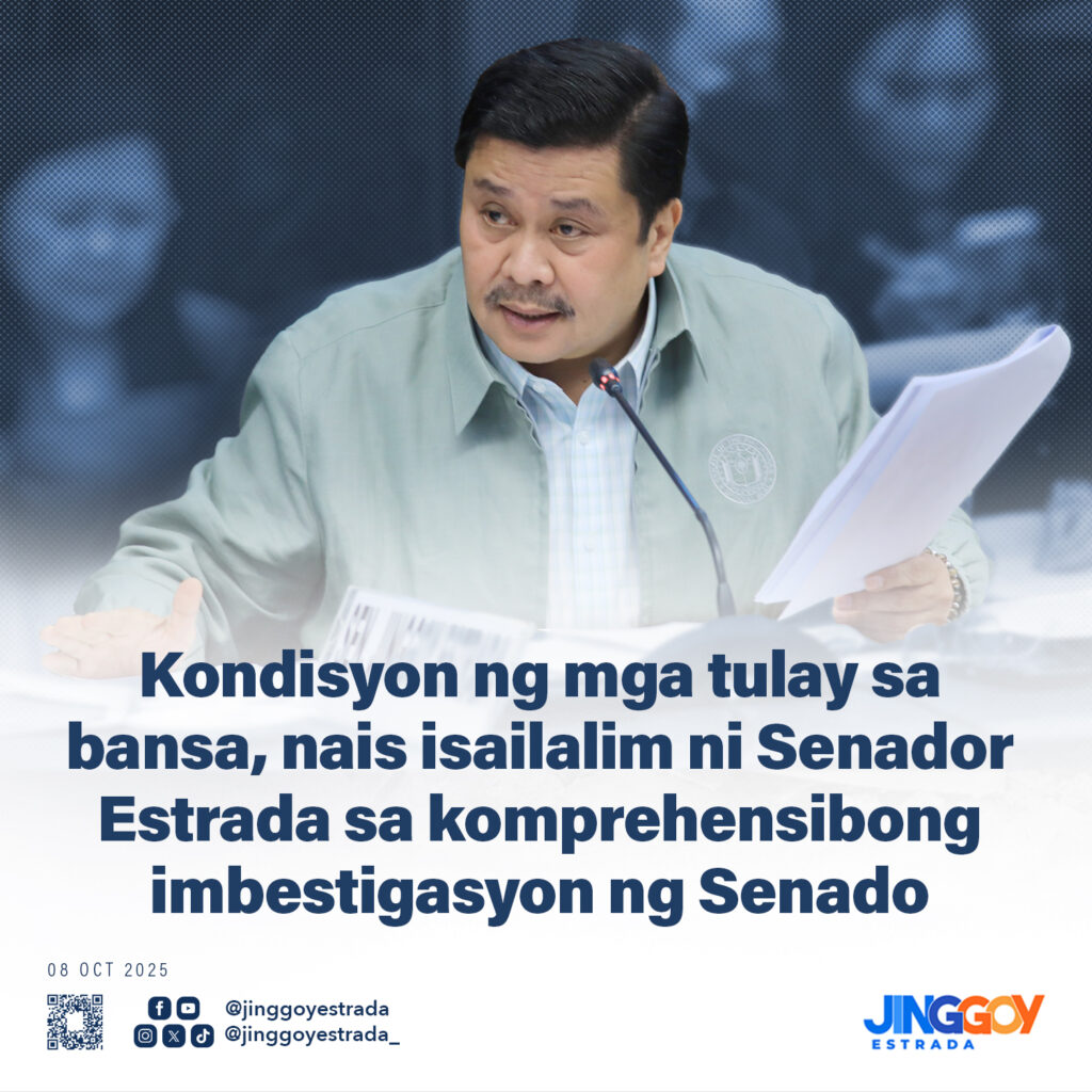 Senator Jinggoy Ejercito Estrada has called for a comprehensive Senate inquiry into the condition and structural integrity of bridges nationwide following the collapse of the 50-year-old Piggatan Bridge in Alcala, Cagayan – the second bridge collapse in the Cagayan Valley region in just eight months.