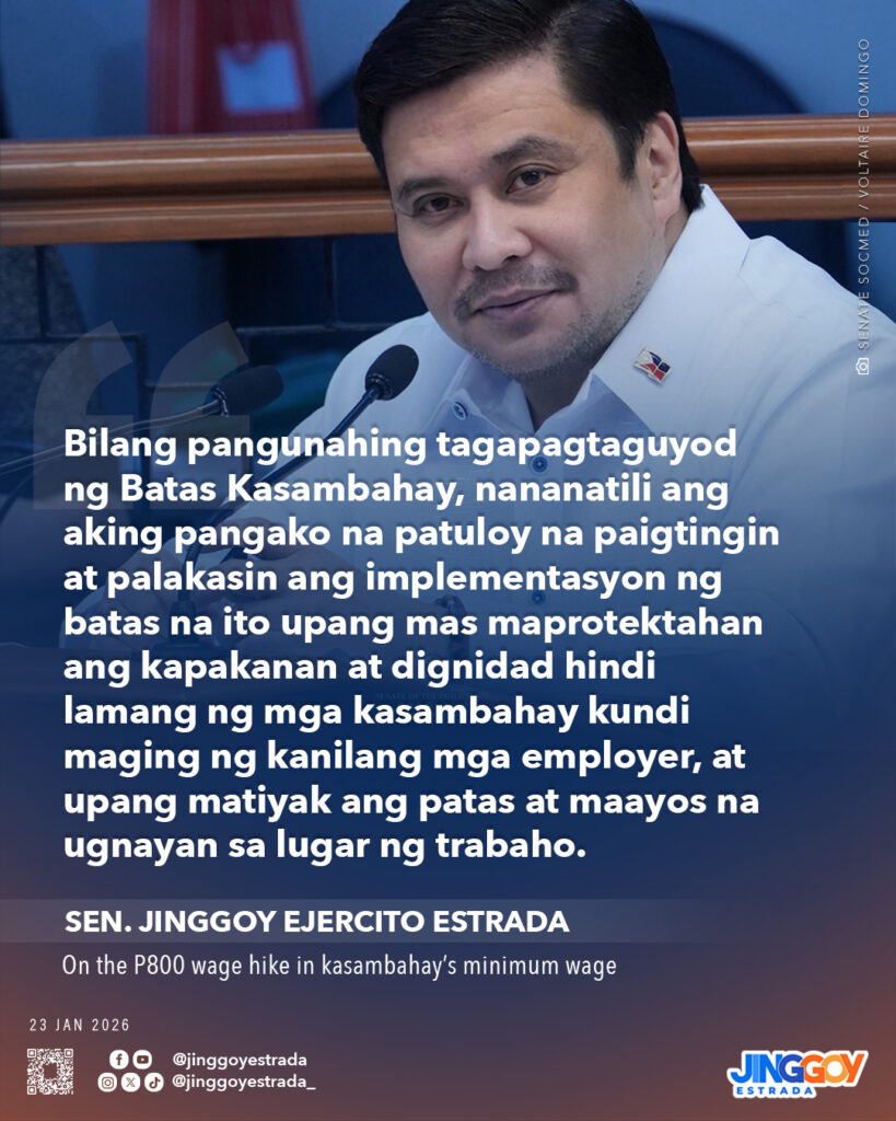 Para sa mga kababayan nating araw-araw na nagsusumikap at itinataguyod ang kanilang pamilya bilang mga kasambahay, malaking tulong ang karagdagang P800 sa kanilang buwanang minimum wage, lalo na sa harap ng patuloy na pagtaas ng presyo ng mga pangunahing bilihin.